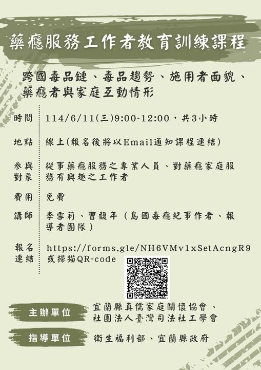 ※主辦單位:宜蘭縣真儒家庭關懷協會、社團法人臺灣司法社工學會